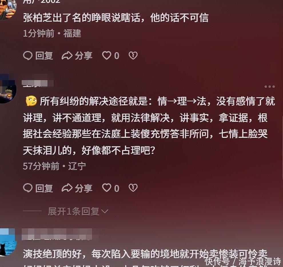 然而,当余毓兴的律师就两份法庭声明的不同之处,紧扣合约条款、转账凭证等核心要点,对她进行一连串追问时,张柏芝好几次都没能控制住情绪,当场哭了起来。她一直用“不记得”来回答,好多次都没答到点子上,后来语气越来越冲,还几次打断了律师的问话。“我已经整整两天没合眼了,这事儿太不地道了,我压力山大,感觉啥都不真实。”隔着屏幕,都能感觉到张柏芝独自面对这事儿时的崩溃与无助。